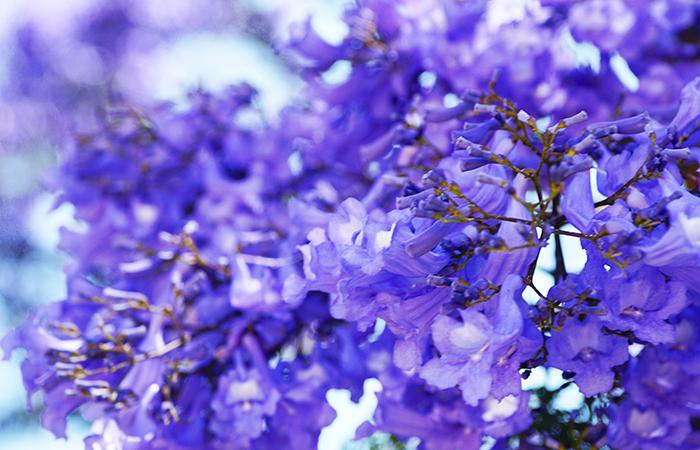 藍花楹的街道,不同公園,只要路過(guò),即可讓路過(guò)的人們享受她的容顏。那淡淡的幽藍,像憂(yōu)郁的少女,托著(zhù)香腮想念著(zhù)遠方的那個(gè)他,卻又如此矜持??粗?zhù)她,總可以嗅到幸福的味道,幻想而美好,寧靜而悠揚。