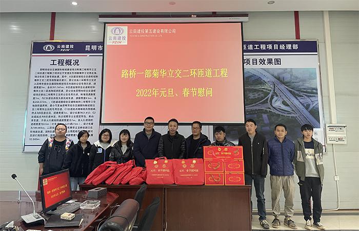 12月23日,公司副總經(jīng)理楊永到路橋一部菊華立交項目開(kāi)展2022年元旦、春節慰問(wèn)活動(dòng),給項目一線(xiàn)職工送來(lái)了新年開(kāi)始的祝福和嚴寒冬日里的溫暖與關(guān)愛(ài)。