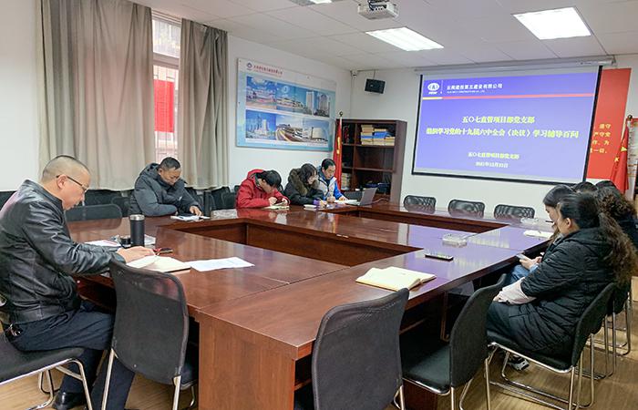 12月23日,五〇七直管部黨支部開(kāi)展主題黨日活動(dòng),黨支部在昆黨員、二線(xiàn)職工共17人在直管部會(huì )議室集中學(xué)習黨史專(zhuān)題黨課《黨的十九屆六中全會(huì )《決議》學(xué)習輔導百問(wèn)》。