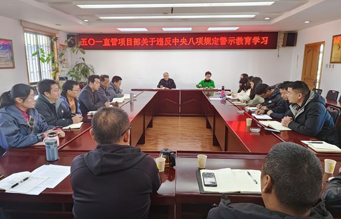 2月28日,五〇一直管項目部在直管部會(huì )議室召開(kāi)《省紀委省監委駐省國資委紀檢監察組關(guān)于7起違飯中央八項規定精神等作風(fēng)問(wèn)題的通報》警示教育,直管部班子成員、科室負責人、項目經(jīng)理及部分關(guān)鍵崗位人員共20余人參加本次警示教育。