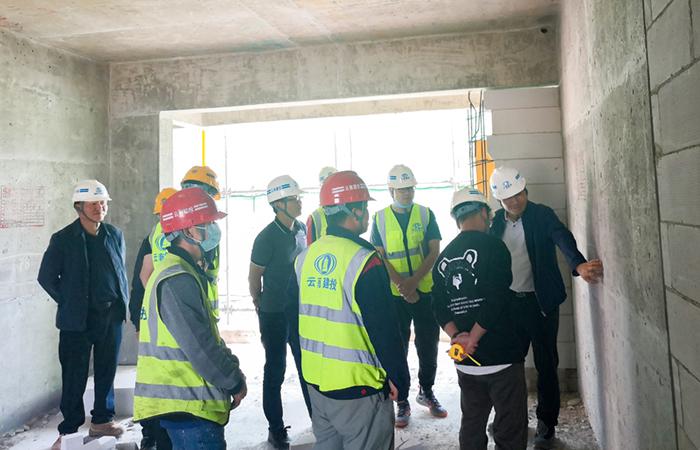 在項目一線(xiàn),付雋蒼對現場(chǎng)進(jìn)行了全面檢查,重點(diǎn)逐層檢查了目前處于二次結構和抹灰施工中的1#棟A單元,在檢查過(guò)程中付雋蒼詳細了解項目情況“磚砌體頂部后塞口使用什么材料進(jìn)行封堵,由誰(shuí)負責施工”、“木模板施工多少錢(qián)一平米”、“樓梯間的吊頂是如何考慮施工的”。在聽(tīng)取項目相關(guān)人員的匯報后,付雋蒼要求:一是項目部應加強團隊建設及管理,加強對各類(lèi)合同的層層交底工作,確保每位施工人員對合同內容有所了解;二是直管部要加強各在建項目的復工復產(chǎn)工作,確保合同工期;三是項目部要加強對現場(chǎng)各種材料的整和工作,以便后續的周轉、使用;四是現場(chǎng)工長(cháng)要明確自己的職責,做好自己該做的事;五是現場(chǎng)任務(wù)書(shū)開(kāi)具人員應知曉現場(chǎng)具體所做工作內容,確保任務(wù)書(shū)內容的準確性和真實(shí)性。