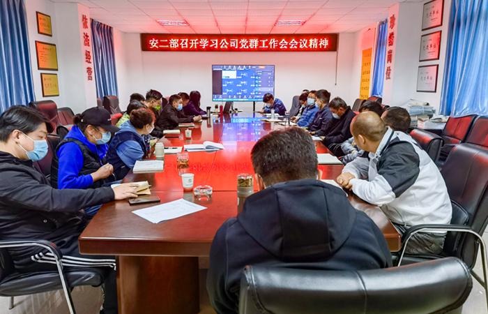 4月8日,安二部組織班子成員、在昆黨員、二線(xiàn)職工貫徹學(xué)習公司黨群工作會(huì )會(huì )議精神。本次學(xué)習共計21人參加。