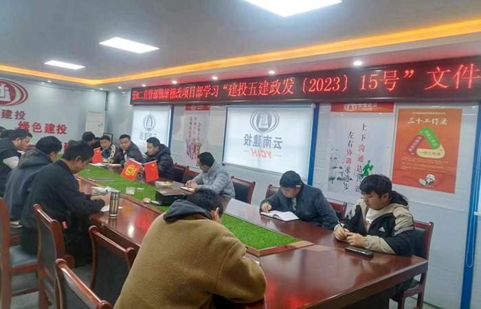 2月21日,由五〇二直管部負責施工的鎮雄縣2018年棚戶(hù)區改造工程項目在項目部會(huì )議室中集中學(xué)習《云南建投第五建設有限公司關(guān)于印發(fā)施工項目目標管理責任書(shū)的通知》(建投五建政發(fā)〔2023〕15號)文件。