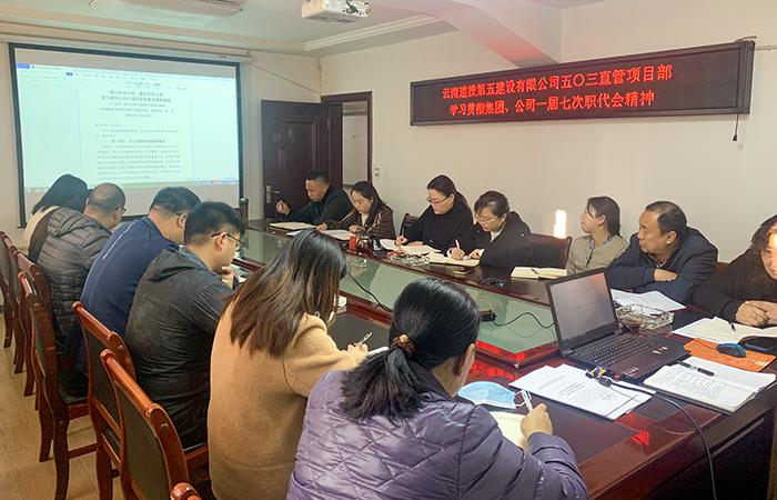 2月22日、24日,五〇三直管項目部分別組織安寧財大住宅小區項目(三標段)、晉寧安企居住區建設項目全體管理人員集中學(xué)習宣貫集團、公司一屆七次職代會(huì )精神,將兩級職代會(huì )精神傳達到項目一線(xiàn)。