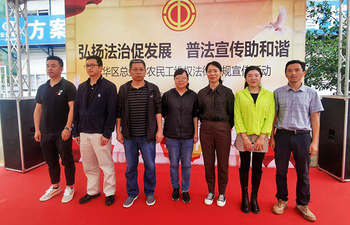 8月24日,五華區總工會(huì )到公司五〇四直管項目部承建的西城時(shí)代西錦里項目開(kāi)展農民工維權法律法規宣傳活動(dòng)。五華區總工會(huì )副主席馬悅雯,五華區勞動(dòng)保障監察大隊大隊長(cháng)陳軍龍,黑林鋪街道黨工委副書(shū)記、總工會(huì )主席劉剛,公司工會(huì )主席冷蕊出席活動(dòng)。