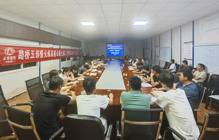 9月7日晚,路橋五部在元綠高速公路項目土建二分部召開(kāi)以“加強質(zhì)量支撐 共建質(zhì)量強國”為主題的2024年“質(zhì)量月”活動(dòng)啟動(dòng)會(huì ),直管部班子成員、元綠高速二分部項目全體管理人員、元綠七分部代表及各施工班組代表參會(huì )。