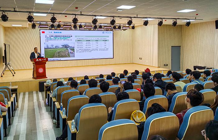 交流座談會(huì )上,直管部主任工程師從項目規劃藍圖、設計理念、室外綠化景觀(guān)設計,到施工過(guò)程中攻克的技術(shù)難題,再到校園風(fēng)貌最終效果,詳細介紹項目整體情況,為前來(lái)參觀(guān)的農大師生展示了項目建設每一處細節。在介紹過(guò)程中,主任工程師還特別強調校園建筑在有限的空間布局、功能分區上如何滿(mǎn)足現代化教學(xué)需求,以及本項目在綠色環(huán)保、可持續發(fā)展方面的創(chuàng )新舉措,引起了師生的濃厚興趣。