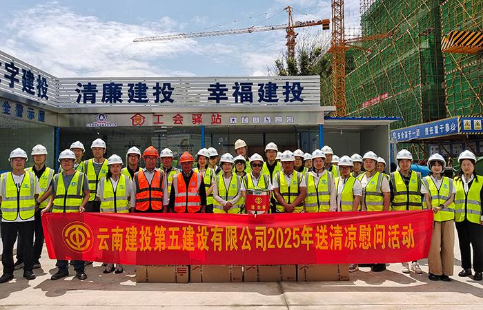 7月21日上午,公司工會(huì )主席白建萍帶隊到第七直管部負責施工的五華區數字經(jīng)濟產(chǎn)業(yè)園西北新城園區項目,開(kāi)展以“工會(huì )溫暖進(jìn)萬(wàn)家”為主題的送清涼慰問(wèn)活動(dòng)。