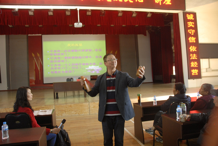 朱景忠結合黨中央關(guān)于加強家風(fēng)建設的精神,用通俗易懂、幽默風(fēng)趣的語(yǔ)言,串起了從古到今、從普通人到名人的良好家訓、優(yōu)良家風(fēng),對社會(huì )風(fēng)氣和社會(huì )核心價(jià)值觀(guān)的影響,為退休職工講了一堂聲情并茂的課。家風(fēng)正,國風(fēng)清,家風(fēng)建設是推進(jìn)黨風(fēng)廉政建設的重要抓手。講座氣氛在朱景忠老師宣傳楊善洲先進(jìn)事跡的快板書(shū)中進(jìn)入高潮。
