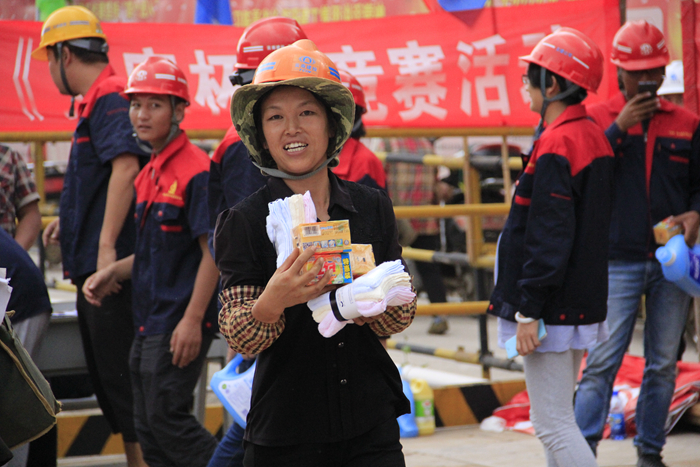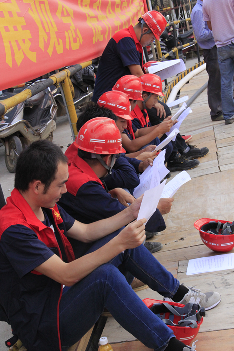 海源財富中心項目部采用競賽方式,以班組為團隊,設有4個(gè)評委,設置一、二、三等獎,共組織了管理人員、木工班組、混凝土班組、鋼筋班組、架子工班組、材料工等6個(gè)團隊參加,每個(gè)團隊15人;天威云變項目部則采取有獎問(wèn)答方式舉行。兩個(gè)項目部共計146人賽,共發(fā)放了280份獎品?;顒?dòng)現場(chǎng)氣氛活躍,反響熱烈,為直管部進(jìn)一步推動(dòng)“普及法律知識、強化維權意識,促進(jìn)和諧發(fā)展”及進(jìn)一步提升施工現場(chǎng)人員的安全素質(zhì),營(yíng)造良好的安全發(fā)展環(huán)境氛圍提供正能量。