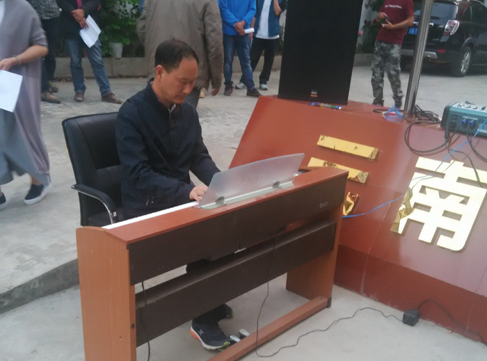公司副總工程師楊洪彩彈奏《建投之歌》