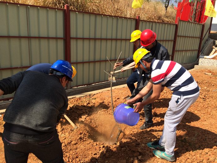 “你挖坑來(lái)、我放樹(shù);你埋土來(lái)、我澆水”,3月13日,公司香麗項目部三工區駐地的植樹(shù)活動(dòng)正在熱火朝天地進(jìn)行著(zhù)。