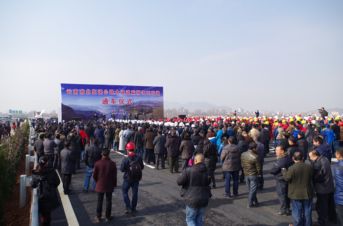 2015年12月26日上午,在冬日和煦的陽(yáng)光下,我省南北高速公路大通道麻柳灣至昭通通車(chē)儀式在集團承建的D標段昭通南立交舉行。值得一提的是,儀式舞臺搭建的位置正是公司負責的D3標段項目部所施工的K89+540橋。隨著(zhù)副省長(cháng)丁紹祥在通車(chē)儀式上宣布麻昭高速全線(xiàn)正式通車(chē),意味著(zhù)全長(cháng)1032公里的云南南北大通道實(shí)現全線(xiàn)貫通,為我省綜合交通3年攻堅和“十二五”圓滿(mǎn)收官增添了濃墨重彩的一筆。