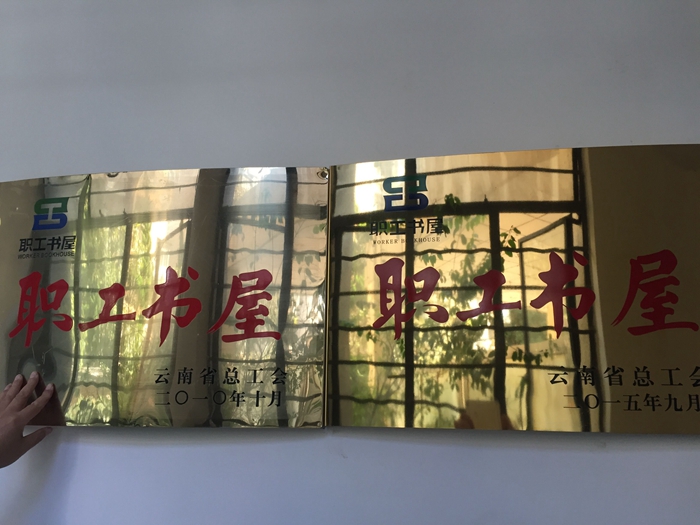 2015年5月至10月,全國總工會(huì )和云南省總工會(huì )為公司職工書(shū)屋的建設做出指導,陸續提供配送新圖書(shū)上千冊,書(shū)目涵蓋法律法規類(lèi)、專(zhuān)業(yè)類(lèi)、哲學(xué)類(lèi)、社會(huì )科學(xué)類(lèi)、自然科學(xué)類(lèi)及綜合性圖書(shū)等,公司工會(huì )也在此期間有效地開(kāi)展了職工書(shū)屋的建設工作,發(fā)起“分享閱讀的樂(lè )趣捐書(shū)倡議”,捐贈收集共一千余冊各類(lèi)圖書(shū)雜志。職工書(shū)屋已達到示范點(diǎn)的標準,順利通過(guò)省總工會(huì )的驗收,并被授予“示范書(shū)屋”匾牌。