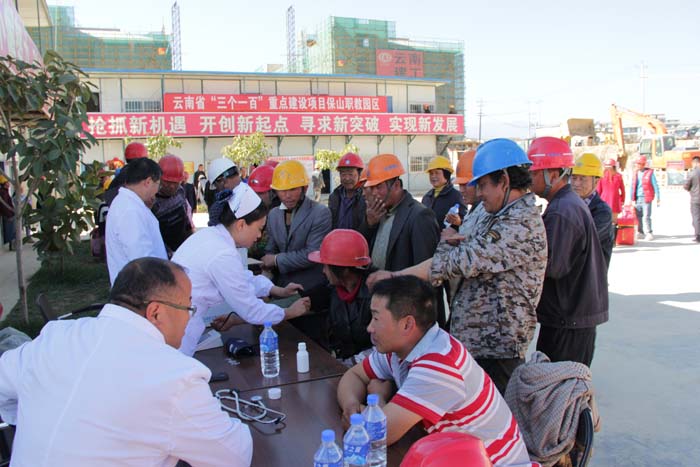 潘紅偉一行在參觀(guān)省級重點(diǎn)項目保山職教園區(保山中等專(zhuān)業(yè)學(xué)校)施工現場(chǎng)后,充分肯定并感謝廣大一線(xiàn)建設者為保山城市建設發(fā)展所做出的貢獻,為大家不畏辛勞,甘于奉獻的精神感到欣慰,并致以廣大一線(xiàn)工友新春佳節最良好的祝福。他希望大家再接再厲為保山發(fā)展做出新的更大的貢獻。并為175名職工發(fā)放慰問(wèn)品,為10名先進(jìn)職工、15名困難職工另發(fā)放慰問(wèn)金。隨后潘紅偉和陳自鋒為項目“流動(dòng)職工書(shū)屋”揭牌。在慰問(wèn)活動(dòng)中,慰問(wèn)組還邀請了保山市人民醫院專(zhuān)家為一線(xiàn)職工開(kāi)展義診活動(dòng)。切實(shí)把黨的真切關(guān)懷、深情厚誼送到了一線(xiàn)職工和農民工的心坎上。