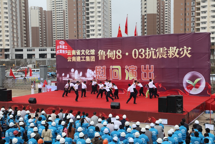 9月20日,集團與省文化館在昭通市昭陽(yáng)區2012年保障房項目部聯(lián)合舉辦的抗震救災文藝演出。慰問(wèn)演出中,參演節目精彩紛呈,舞蹈、獨唱、小品、雜耍等節目各具特色,彰顯了建工人高原鐵軍的精神。