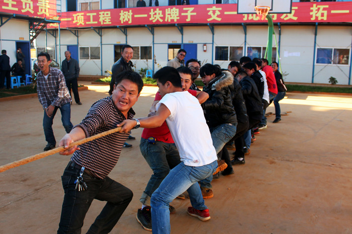 聯(lián)歡活動(dòng)中,第五直管項目部和第八直管項目部、甲方與監理代表各進(jìn)行了一場(chǎng)精彩的籃球友誼賽。隨后,甲方、監理方、第五直管項目部、第八直管項目部又分成了4個(gè)小組,分別進(jìn)行了拔河比賽,現場(chǎng)氣氛十分熱烈。