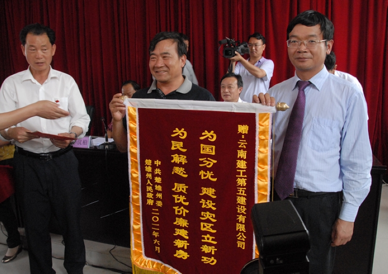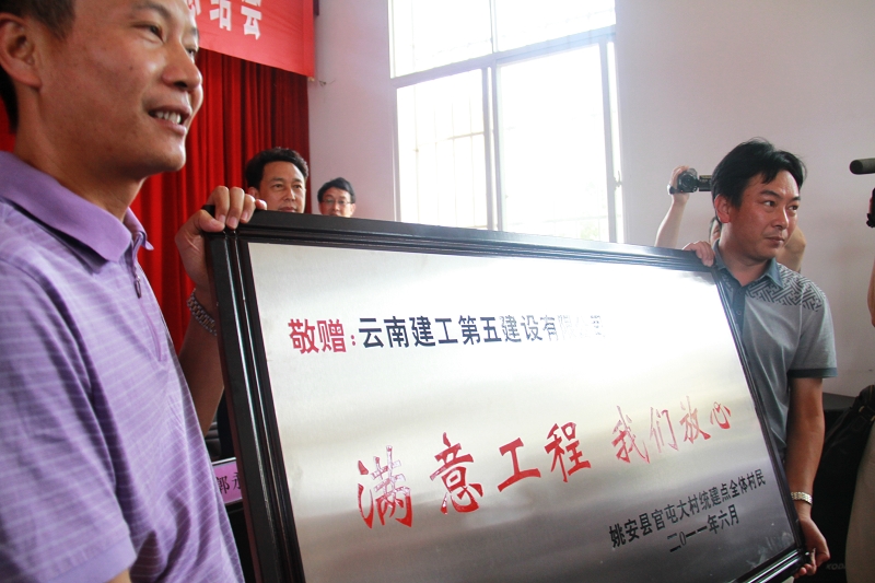 正是懷著(zhù)這樣崇高的使命感和責任感,他們一步一個(gè)腳印地走到了最后,楚雄州州委、州政府為他們送上一面錦旗,說(shuō)他們“為國分憂(yōu)為民解愁”。楚雄州姚安縣委、縣政府為他們獻上一塊牌匾——建筑“鐵軍”,放心工程。官屯村的村民們?yōu)樗麄儷I上一塊牌匾——滿(mǎn)意工程,我們放心?;蛘呔褪且驗樗麄冏杂X(jué)地把百姓利益與國企責任聯(lián)系在了一起,才贏(yíng)得了來(lái)自社會(huì )各界那么多的肯定,而這也恰恰成了他們在這個(gè)七•一為我們的黨獻上的,最美好的禮物!