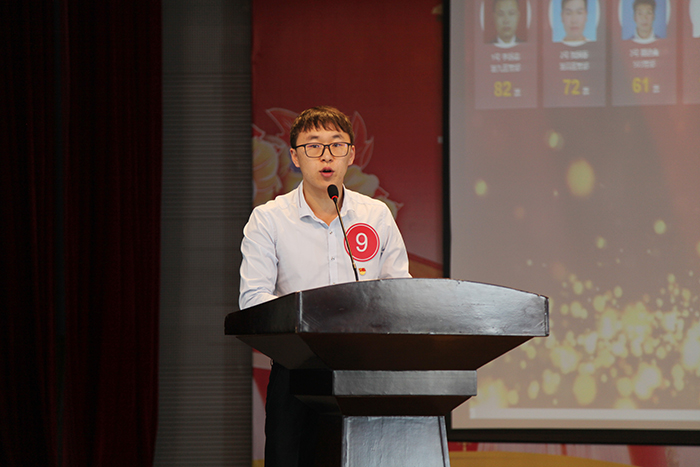 公開(kāi)競選中,選手們要在規定的4分鐘內展示自己,贏(yíng)得投票。選手們聲情并茂,用一句句樸實(shí)的話(huà)語(yǔ)展現了他們吃苦耐勞、堅韌不拔的精神面貌,激勵了在場(chǎng)的每一位青年職工樹(shù)立目標、懷抱夢(mèng)想、勇于拼搏。9號選手楊揚講述了他進(jìn)駐宣威得祿鄉兩年的扶貧故事,一張張入戶(hù)走訪(fǎng)、幫老鄉賣(mài)農產(chǎn)品的照片深深打動(dòng)了在場(chǎng)觀(guān)眾。