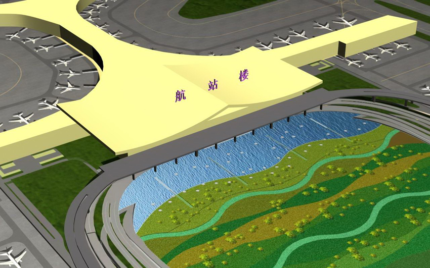 機場(chǎng)航站樓前停車(chē)樓及站前高架橋位置圖