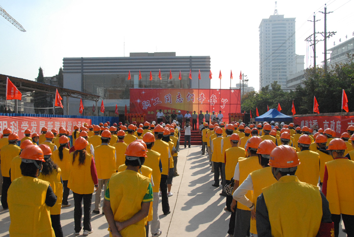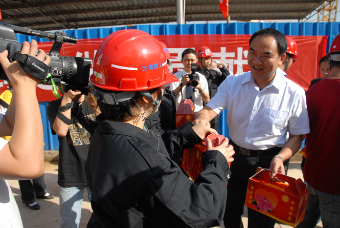 技術(shù)支持: 方森科技 2010年9月19日上午,在中秋節、國慶節來(lái)臨之際,昆明市總工會(huì )主席戚永宏率市總工會(huì )領(lǐng)導班子一行來(lái)到公司直五部施工的昆明市新工人文化宮建設工地慰問(wèn)正在施工的公司職工和農民工,為他們每人帶去了一盒月餅。戚永宏說(shuō):“大家辛苦了,祝大家節日快樂(lè )?!?BR> 五公司副總經(jīng)理李興奎代表施工單位對他們的到來(lái)和關(guān)心表示歡迎和感謝。他說(shuō):“多年來(lái),公司創(chuàng )造了5項魯班獎,承建了省內多項重點(diǎn)工程、市內多項地標性建筑。去年,公司簽訂工程合同額30億元,完成施工產(chǎn)值18億元,是各位領(lǐng)導關(guān)心、支持的結果。按建工集團要求,今年公司承接任務(wù)要達到35億元,完成施工產(chǎn)值25億元,公司將不斷強化質(zhì)量、安全、文明施工管理,參與昆明市“四創(chuàng )兩爭”活動(dòng),支持新昆明的建設,為昆明市的經(jīng)濟發(fā)展作出應有的貢獻?!睂τ诶ッ魇行鹿と宋幕瘜m項目,他強調“公司將與設計、監理各單位密切配合,盡快掀起施工熱潮,嚴格管理,精心施工,重合同,講誠信,按期完成施工任務(wù)?!?BR> 戚永宏一行還到施工現場(chǎng)了解項目的具體施工情況,與項目建設者們親切交談。
