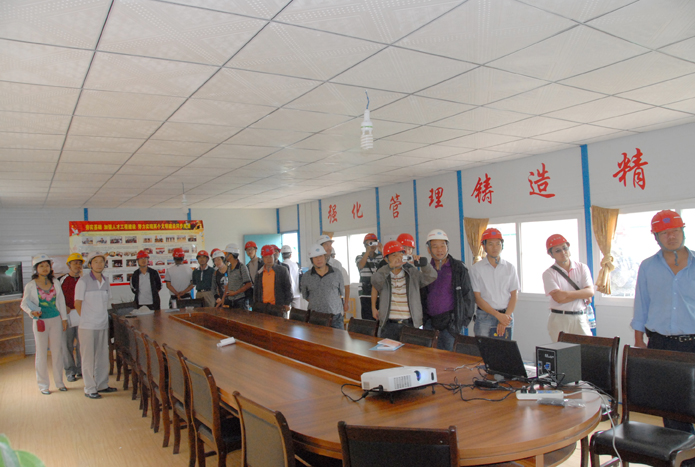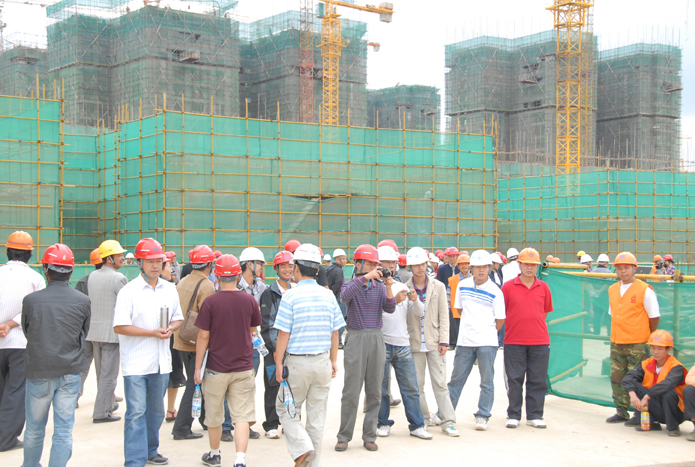 會(huì )后,所有參會(huì )人員參觀(guān)了五公司第三城•丹槿園項目現場(chǎng)安全、文明施工管理和班組班前活動(dòng)。