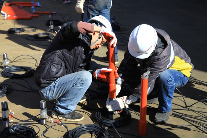 “15MPA、18MPA、21MPA……”2013年1月17日,云南大力神鋼結構廠(chǎng)區內傳來(lái)了一個(gè)儀器讀數的聲音,一群五建人雙眼緊盯著(zhù)一個(gè)輪扣架體,神情緊張卻又充滿(mǎn)期盼, 600KN壓力試驗機儀表指針不停地的轉動(dòng)著(zhù),“砰”的一聲,儀表指針飄過(guò)24MPA旋即回到零位,場(chǎng)地上的人好似卸掉重負一般歡欣起來(lái):“輪扣壓力試驗成功了!”