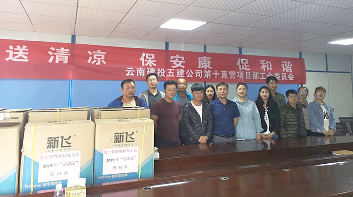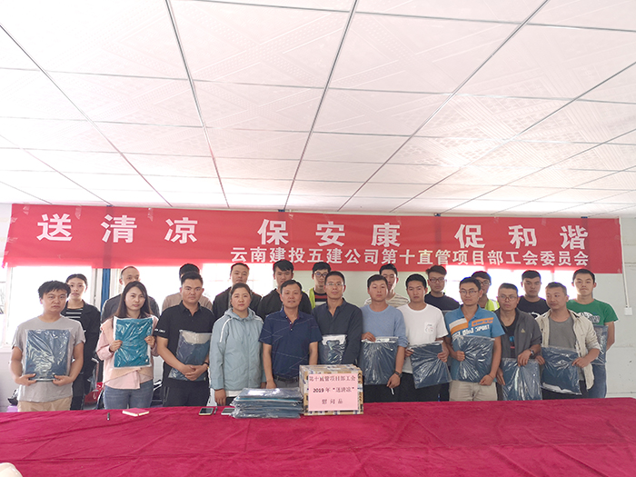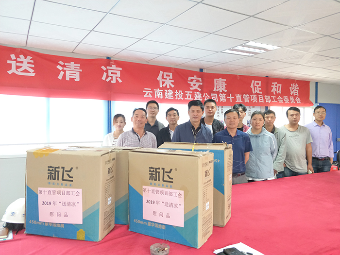 正值高溫時(shí)節,氣溫日益炎熱,結合公司2019年“送清涼 保安康 促和諧”活動(dòng)主題,5月7日-13日期間,第十直管部工會(huì )深入施工一線(xiàn),慰問(wèn)長(cháng)期奮戰在施工一線(xiàn)的職工,為他們送去了站立式旋轉電風(fēng)扇和防曬服,給高溫酷暑的一線(xiàn)帶來(lái)些許涼意。