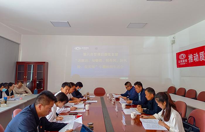9月27日上午,第六直管項目部黨支部召開(kāi)“講廉潔、知敬畏、轉作風(fēng)、防風(fēng)險、促發(fā)展”專(zhuān)題組織生活會(huì )。公司副總經(jīng)理石俊到會(huì )指導。黨支部副書(shū)記通報了本次專(zhuān)題組織生活會(huì )的會(huì )前準備情況并代表黨支部班子作對照檢查。所有班子成員依次對照“七個(gè)是否”查找存在的突出問(wèn)題,逐項對照、認真回答“六個(gè)靈魂之問(wèn)”進(jìn)行個(gè)人對照檢查,并逐一開(kāi)展了批評與自我批評,明確了下一步努力的方向及整改措施。普通黨員依次回答六個(gè)靈魂之問(wèn)。石…