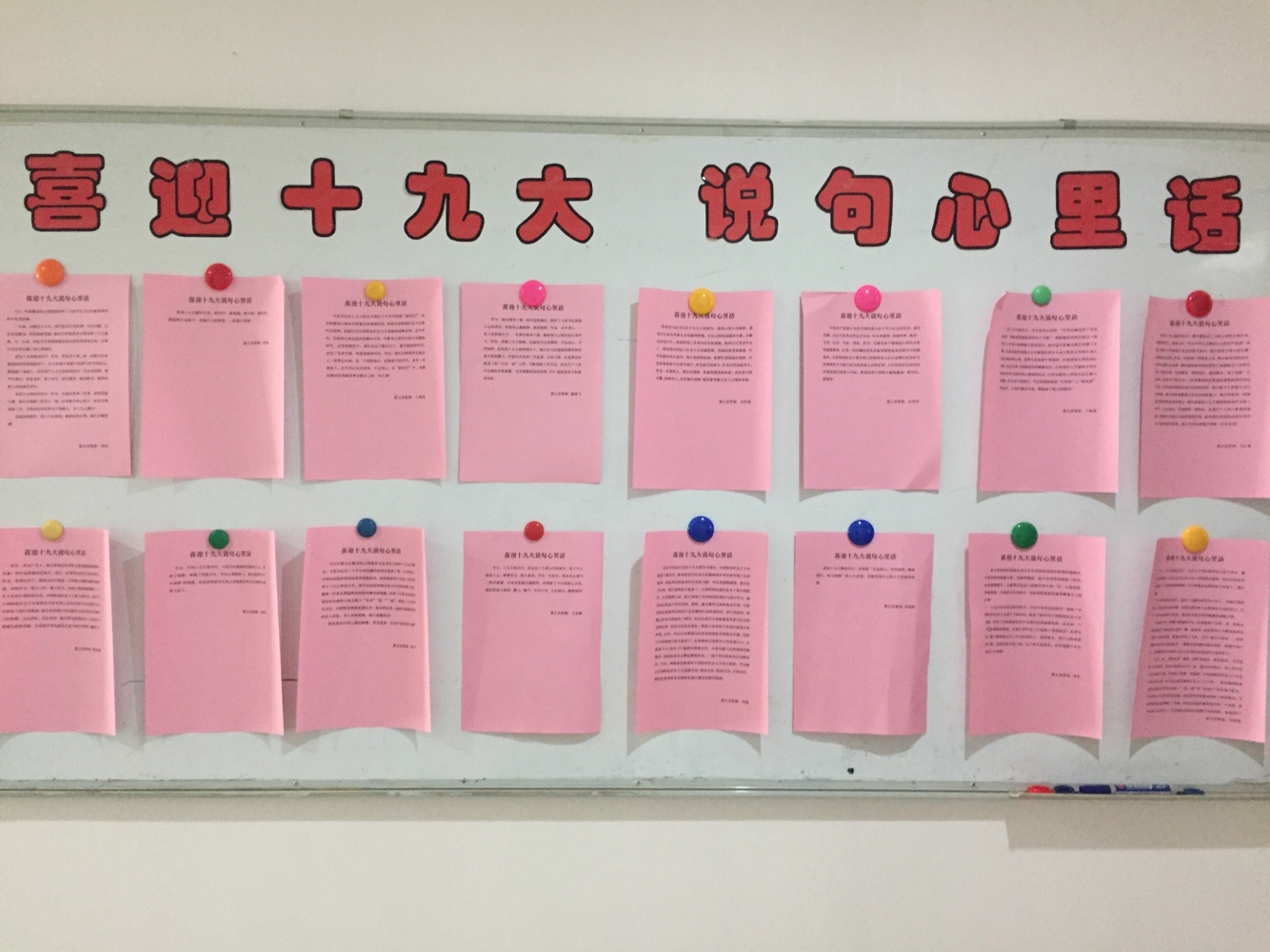 10月18日上午,第五直管部職工在通過(guò)網(wǎng)絡(luò )直播觀(guān)看了十九大開(kāi)幕式。 開(kāi)幕式后第五直管項目部干部職工紛紛通過(guò)微博、微信、央視新聞網(wǎng)等媒體繼續關(guān)注十九大的后續新聞報道。大家先后在群中熱烈討論,寫(xiě)下自己的感觸感言和對祖國的祝福。直管部將感言整理后,粘貼在“喜迎十九大 說(shuō)句心里話(huà)”的專(zhuān)題宣傳欄內,讓同事們在關(guān)注十九大、慶祝會(huì )議勝利...