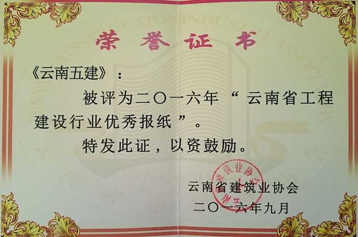 9月21日,云南省建筑業(yè)協(xié)會(huì )發(fā)布了《關(guān)于對2016年度云南省工程建設行業(yè)優(yōu)秀期刊、報紙的表彰決定》(云建協(xié)[2016]32號)。公司《云南五建》報獲評“云南省工程建設行業(yè)優(yōu)秀報紙”。 《云南五建》報自2011年1月開(kāi)辦,至2016年9月共發(fā)行69期,常規分為4個(gè)版面,內容涉及公司新聞、管理動(dòng)態(tài)、工程動(dòng)態(tài)、教育培訓、安全生產(chǎn)...