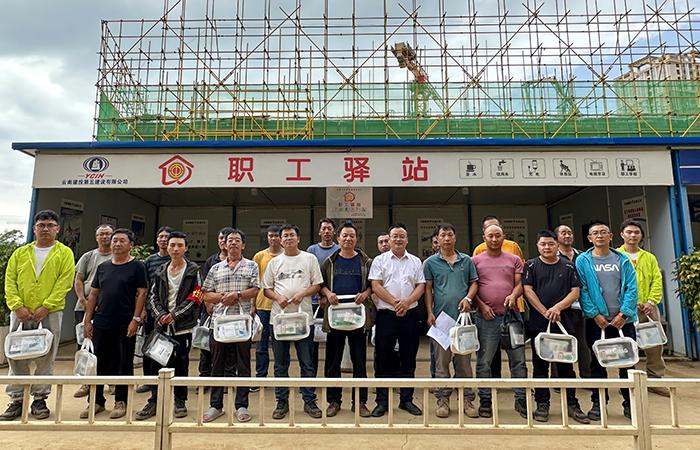 8月15-17日,第七直管項目部工會(huì )先后到云南藝術(shù)學(xué)院、輕紡職業(yè)學(xué)院等在建項目開(kāi)展“工會(huì )溫暖進(jìn)萬(wàn)家”送清涼活動(dòng),為堅守項目一線(xiàn)的職工送去小風(fēng)扇、防曬袖套、清涼油、花露水等“清涼大禮包”?;顒?dòng)中,直管部工會(huì )主席向一線(xiàn)職工講解夏季防暑降溫的小常識,分享預防蚊蟲(chóng)叮咬的小妙招,囑咐大家要做好防暑降溫工作,合理安排好高溫工作時(shí)間,注意自身健康,謹防高溫中暑。要求項目部要把健康安全放首位,注意食堂衛生、菜品?!?