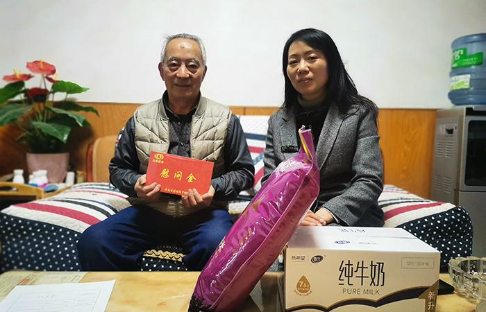 12月6日,公司工會(huì )主席冷蕊帶隊工會(huì )辦公室和公司退管會(huì )一同入戶(hù)慰問(wèn)公司困難勞模欒寶明同志,代表公司領(lǐng)導班子向他送上慰問(wèn)金和慰問(wèn)品,同時(shí)也送上了公司領(lǐng)導對困難勞模的濃濃關(guān)愛(ài)。來(lái)到欒寶明家,冷蕊一行與欒寶明親切握手,與他進(jìn)行親切交談,詳細詢(xún)問(wèn)其身體狀況和生活近況,耐心傾聽(tīng)老同志的心聲,代表公司對他為公司、為社會(huì )做出的貢獻表示感謝,并親手將慰問(wèn)金和牛奶、大米等慰問(wèn)品遞到他手中?!拔覀兇斫M織來(lái)看您了,您…