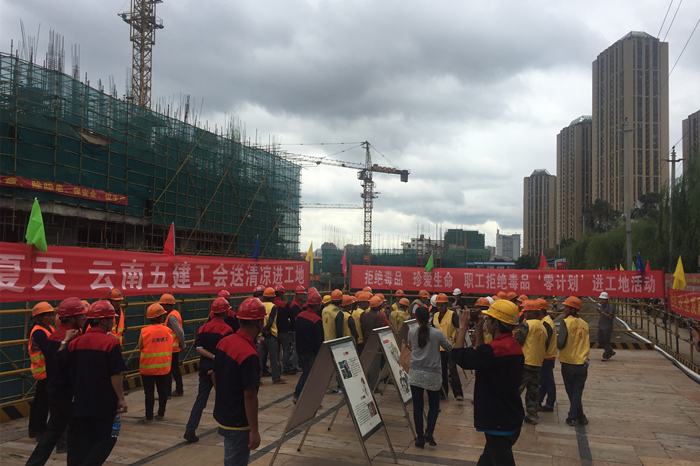 6月23日,公司工會(huì )組織禁毒宣傳小組到昆明市高新區海源財富中心項目現場(chǎng),向現場(chǎng)五〇八直管項目部、五〇四直管項目部、第三安裝直管項目部的一線(xiàn)項目管理人員及勞務(wù)班組人員共160余人進(jìn)行了禁毒知識宣傳活動(dòng)和“送清涼”慰問(wèn)活動(dòng)。 活動(dòng)中,公司工會(huì )邀請了昆明市第五強制戒毒所的武會(huì )明警官來(lái)給大家做拒毒防毒宣傳,武會(huì )明擁有豐富緝毒經(jīng)驗,他...