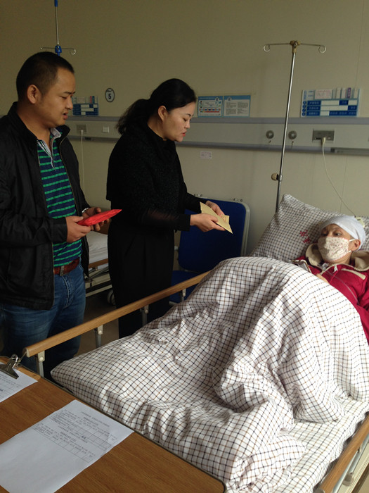 9月17日上午,公司工會(huì )常務(wù)副主席何君、第六直管項目部書(shū)記楊峰等一行人來(lái)到云南省腫瘤醫院看望了公司第六直管部海外職工姜建明患病的妻子,并送上了慰問(wèn)金,其中包括集團工會(huì )及公司工會(huì )慰問(wèn)金5000元,第六直管項目部愛(ài)心捐款19070元,共計24070元。 2013年7月,姜建明的妻子經(jīng)云南省腫瘤醫院確診為卵巢腫瘤入院進(jìn)行治療及手...