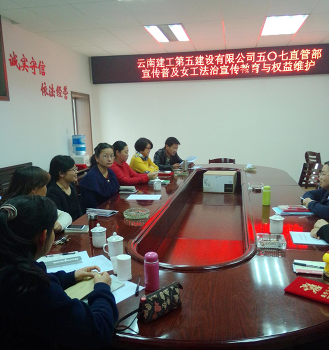 根據云建五工字〔2015〕11號文,關(guān)于開(kāi)展公司2015年女職工維權行動(dòng)月活動(dòng)文件的精神要求,五〇七直管項目部于3月24日早上10:00在直管部會(huì )議室組織全體二線(xiàn)女職工和部分一線(xiàn)女職工共12人學(xué)習普及了女職工權益保護法律法規,使廣大婦女更多地了解法律,運用法律武器保護自己的合法權益和特殊利益。 通過(guò)這次女職工維權行動(dòng)月活動(dòng)...