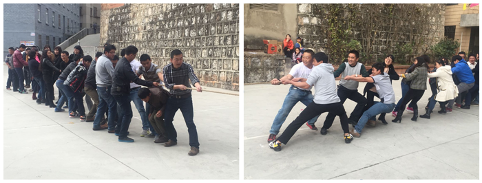 2015年2月13日下午2點(diǎn),隨著(zhù)拔河比賽裁判員的一聲哨響,五〇六直管項目部迎新春活動(dòng)正式拉開(kāi)帷幕。 由直管部經(jīng)理、書(shū)記帶隊,全體職工組成甲、乙兩支代表隊,比賽過(guò)程中,參賽隊員努力拼搏。比賽場(chǎng)上,隊員們口中一起高呼著(zhù)“一二、一二”, 雙手緊握長(cháng)繩,憋足了勁拼命往后拉;比賽場(chǎng)下,圍觀(guān)的職工家屬自發(fā)組成啦啦隊為比賽隊員吶喊加油...