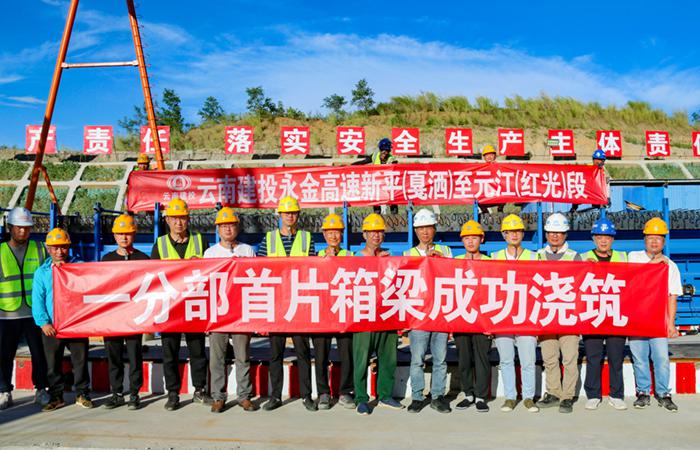 7月25日凌晨5點(diǎn),在路橋三部承建的永金高速一分部2號預制梁場(chǎng)內,隨著(zhù)最后一斗混凝土順利澆筑入模,經(jīng)過(guò)近6個(gè)小時(shí)的緊張施工,主線(xiàn)2號大橋首片30米預制箱梁澆筑成功。為保障首片預制箱梁順利澆筑完成,項目部高度重視、統籌安排、精心組織,召開(kāi)首件工程部署會(huì ),對生產(chǎn)、質(zhì)量、安全等進(jìn)行了全方面交底,從施工工藝、原材料質(zhì)量、機械設備、現場(chǎng)文明施工方面嚴格把關(guān)。澆筑過(guò)程中,現場(chǎng)技術(shù)管理人員堅守一線(xiàn),全程指導跟蹤…