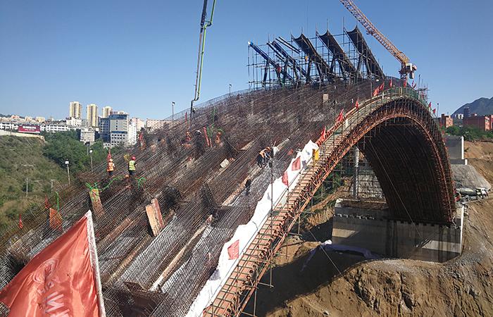 鎮雄三孔景觀(guān)橋右幅主拱圈底板混凝土澆筑完成