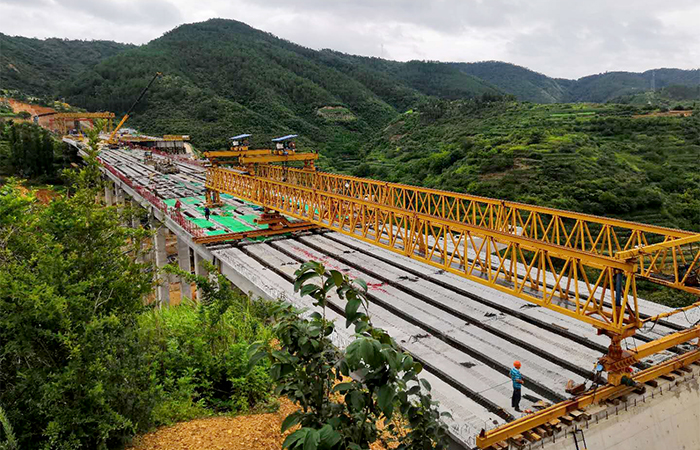 彌玉高速象山段玉屏村3號大橋右幅T梁順利架設完成