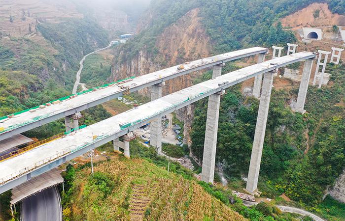 鎮果公路項目三分部五谷大橋鋼箱梁橋面板順利澆筑完成