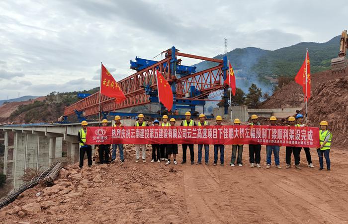 搶抓黃金期 奮戰100天 | 云蘭高速土建五分部順利完成下佳朋大橋左幅T梁架設