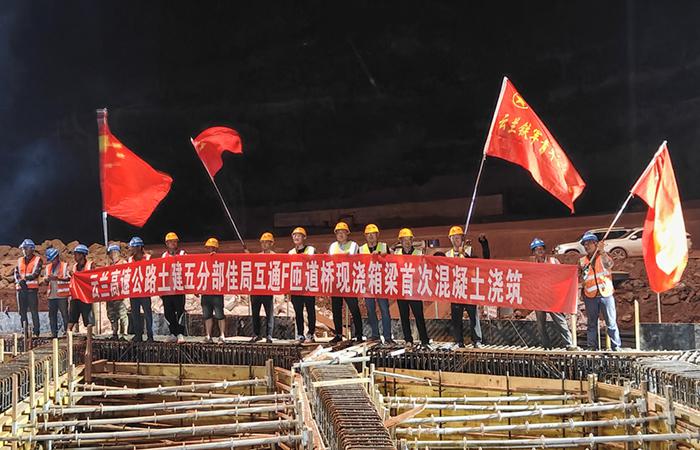 搶抓黃金期 奮戰100天 | 云蘭高速土建五分部佳局互通F匝道橋現澆箱梁完成首次混凝土澆筑