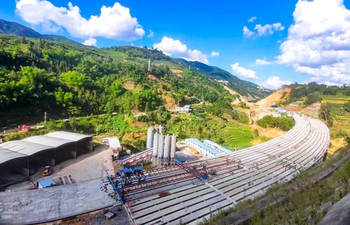 6月26日,在路橋五部負責施工的元綠高速七分部左幅阿德1號大橋施工現場(chǎng),五聯(lián)現澆箱梁順利澆筑完成,標志著(zhù)該項目橋梁主體工程進(jìn)入了良好的沖刺階段。?元綠高速澤初立交區包含主線(xiàn)橋梁5座,橋梁全長(cháng)左幅2034.66米、右幅2237.88米,設置匝道橋梁5座,橋梁全長(cháng)1291.12米。其中,主線(xiàn)阿德1號大橋位于元陽(yáng)至綠春高速公路澤初互通范圍內的主線(xiàn)橋梁,為雙幅橋梁,左幅全長(cháng)612.4米,起點(diǎn)樁號為ZK35…