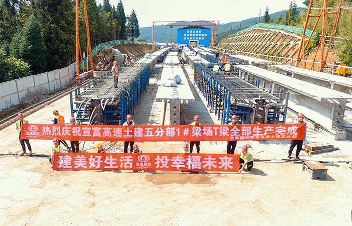 宣富高速公路項目五分部1#梁場(chǎng)預制T梁全部生產(chǎn)完成