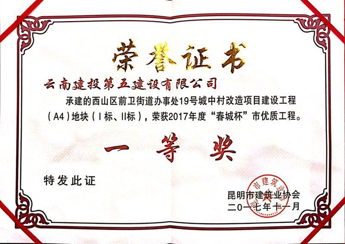 直五部潤城19#地塊項目喜獲“春城杯”優(yōu)質(zhì)工程獎