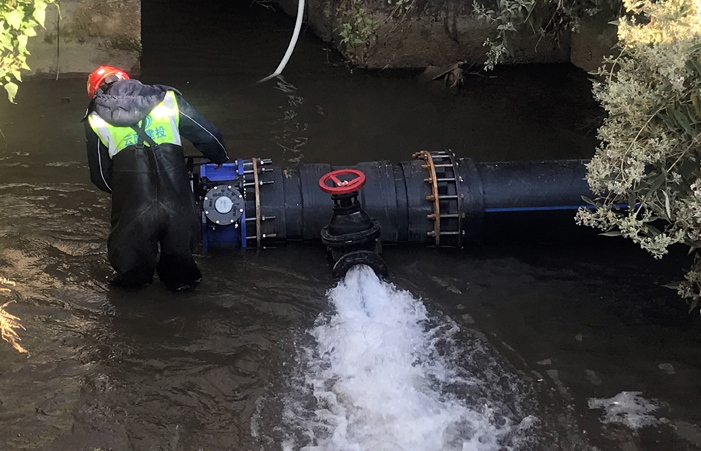 巧家三水廠(chǎng)隧道改擴建工程保通管試水成功