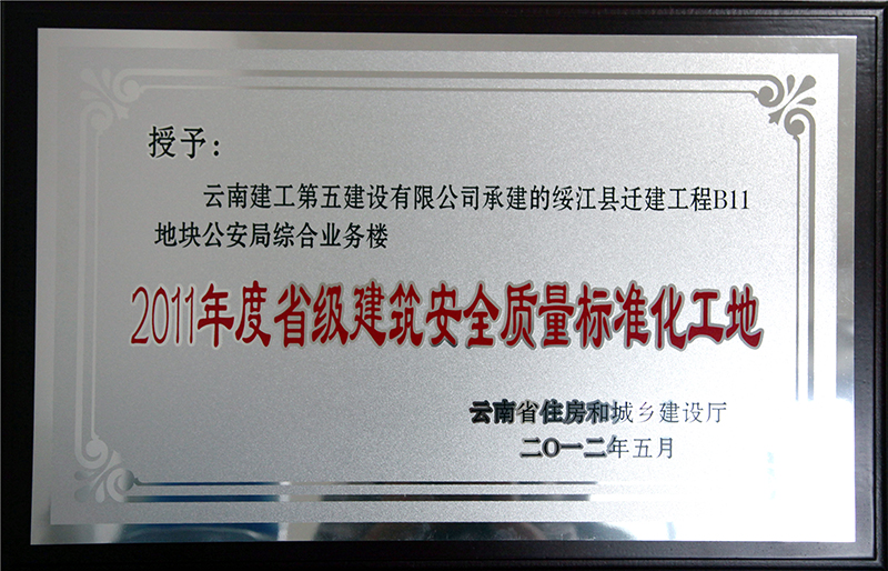 綏江項目部承建施工的綏江縣遷建工程B11地塊公安局綜合業(yè)務(wù)樓工程獲“2011年度省級建筑安全質(zhì)量標準化工地”稱(chēng)號