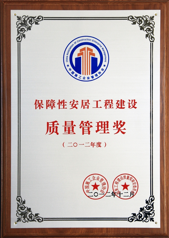 2012年12月,公司榮獲2012年度中國施工企業(yè)管理協(xié)會(huì )保障性安居工程建設質(zhì)量管理獎。