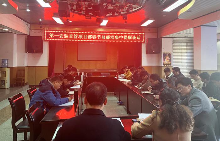 2月4日下午,第一安裝直管項目部黨支部在直管部會(huì )議室開(kāi)展春節前廉潔提醒談話(huà)。直管部領(lǐng)導班子、二線(xiàn)關(guān)鍵崗位人員、項目經(jīng)理共計20人參會(huì )。本次廉潔提醒重點(diǎn)學(xué)習了中央紀委國家監委網(wǎng)站2月4日推送的《云南通報2起形式主義、官僚主義典型問(wèn)題》。會(huì )議要求:直管部黨員領(lǐng)導干部要帶頭做好表率,堅守政治底線(xiàn),以身作則,營(yíng)造風(fēng)清氣正、廉潔過(guò)年的良好氛圍;要著(zhù)重加強思想建設,制度學(xué)習不能浮于表面、流于形式,要使學(xué)習成果…